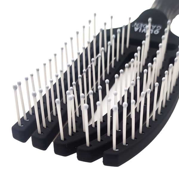 Гнучка нейлонова щетина з масажними кульками на кінцях м'яко і якісно вичісує волосся, а також надає приємний стимулюючий ефект на шкірний покрив голови, тим самим провокуючи зростання нових здорових волосків. Крім цього іонізована щетина має антистатичні властивості.