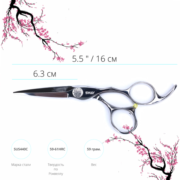 Професійні перукарські ножиці Sway Infinite 106 у розмірі 5,5 дюймів