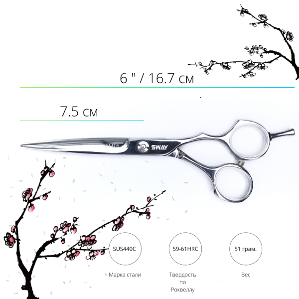 Професійні перукарські ножиці Sway Elite 202 у розмірі 6 дюймів