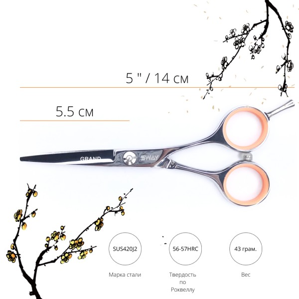 Ножиці серії Grand від торгової марки Sway – це класичний дизайн з поліруванням до дзеркального блиску. Висока якість сталі, м'який хід та відмінні показники зрізу волосся – завдяки цим характеристикам дана серія ножиць ідеально підходить як для майстрів-початківців, так і для майстрів з великим досвідом і вимогами. Досконалість стилю, досягнута простотою дизайну, стане чудовим помічником у роботі.
