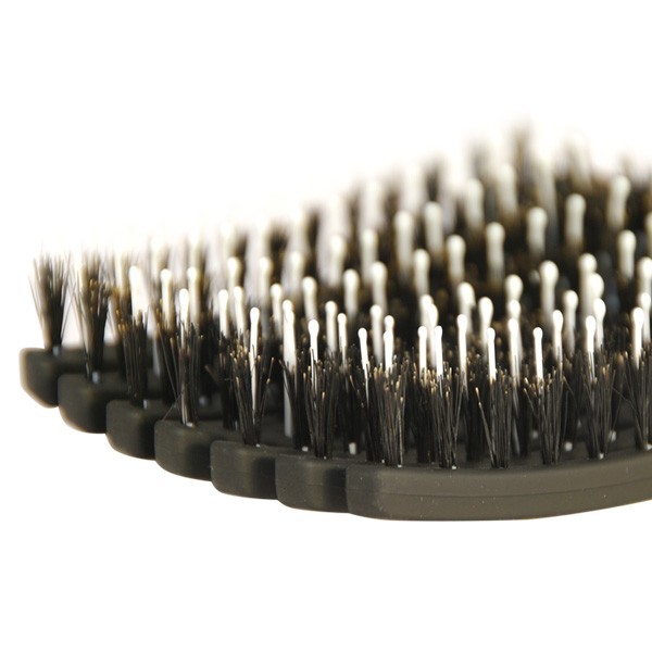 Комбінована щетина з щетини дикого кабана і нейлонових зубчиків м'яко і якісно вичісує волосся. Крім цього у цій щітки іонізована щетина, яка має антистатичні властивості.