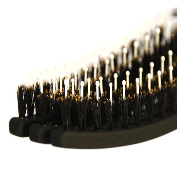 Комбінована щетина з щетини дикого кабана і нейлонових зубчиків м'яко і якісно вичісує волосся. Крім цього у цій щітки іонізована щетина, яка має антистатичні властивості.