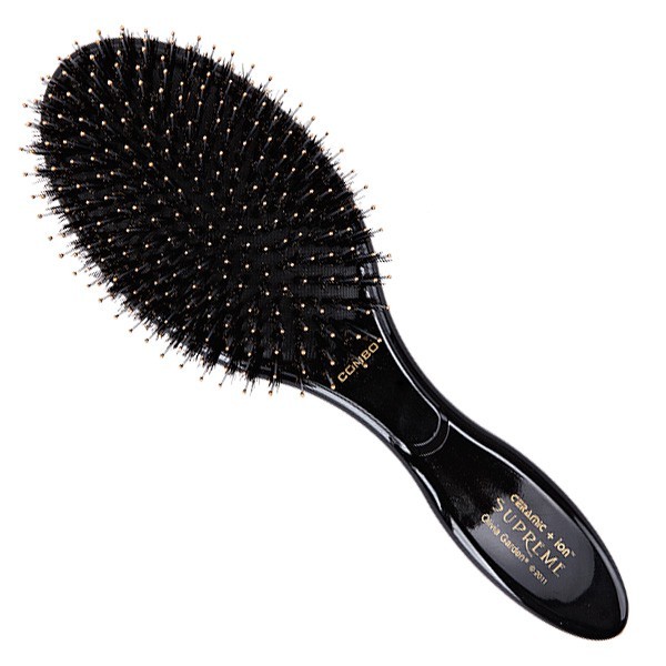 Щітка для щоденного догляду Olivia Garden Supreme Ceramic + ion Combo має стильний дизайн і зручну округлу форму. Унікальна двостороння комбінація щетини з кабана + іон нейлонова щетина дбайливо та акуратно масажує шкіру голови, тим самим стимулюючи ріст волосся. Спеціальні кульки на нейлоновій щетині не травмують шкіру і не виривають волосся. Також щітка знімає електризацію волосся, володіє антибактеріальними властивостями та ідеально підходить для укладки короткого і середнього по довжині волосся. Цей ефект досягається завдяки чергуванню натуральної щетини та гнучких зубчиків. Легка і зручна ручка ідеально лежить в руці.