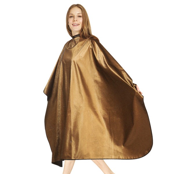 HairMaster Gold Color- це високоякісний пеньюар для фарбування зі стовідсоткового поліестеру, стійкий до стирання. Пеньюар легко очищається від залишків волосся і косметичних засобів. Універсальна застібка на резинці розрахована під будь-яку повноту шиї.