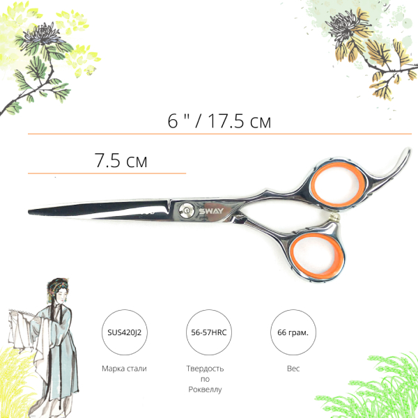 Ножиці серії Job від торгової марки Sway – це традиційні відчуття при стрижці завдяки ергономічному дизайну. Регульована гвинтова група та полірування до дзеркального блиску забезпечать м'який та плавний хід. Професійні ножиці серії Job є однією з базових серій ножиць для початківців.