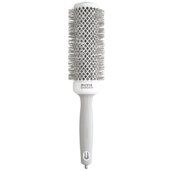 Завдяки високоякісному керамічному покриттю, брашинг Olivia Garden Ceramic рівномірно нагрівається і легко розчісує пасма, а турмалін-іонна технологія надає волоссю більшого блиску. Наскрізні отвори великого розміру добре продуваються і сприяють швидкому висиханню, скорочуючи шкідливий вплив фена і не допускаючи перегріву волосся зберігаючи їх здоровими. Нейлонова щетина, має антистатичні властивості, перешкоджаючи електризації.