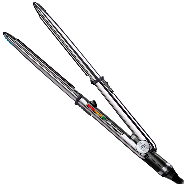 Babyliss Pro Elipsis 3100 - металевий випрямляч для волосся. Виробник оснастив прилад Elipsis 3100 найсучаснішими технологічними рішеннями! Головними перевагами прасування є: металевий корпус з нержавіючої сталі SUS304, опукла форма для укладання хвилями, електронний терморегулятор з 5-ма режимами основних температур, подовжені плаваючі пластини 24 мм х 100 мм, технологія IonMultiplier (генератор іонів) тощо. Бездоганний нагрів забезпечує подвійний керамічний елемент, який своєю чергою також сприяє ідеально-рівномірному прогріванню пластин по всій площі. Самі пластини покриті ковзаючим покриттям EP Technology5.0, яке отримано шляхом електрогальванізації струмами, без хімічних реагентів. Саме завдяки спеціальному покриттю, Babyliss Pro відмінно ковзає по будь-якого волоссю.