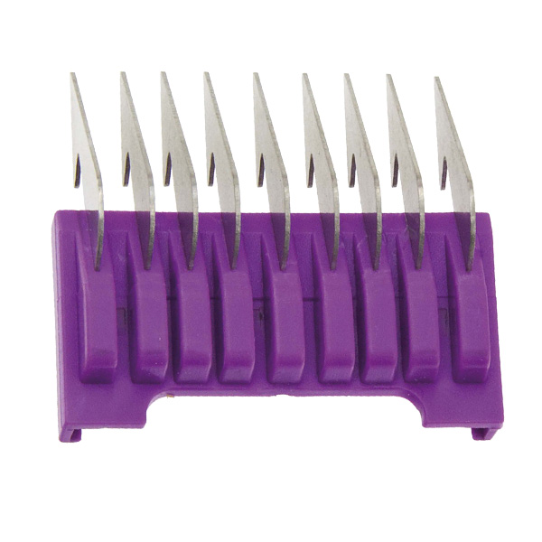 Насувна насадка зі сталевими зубцями. Призначена для використання на ножових блоках електромагнітних машинок, з шириною ножового блоку 46 мм. Виготовлена з високоякісного, міцного пластику, надійно фіксується на ножовому блоці без можливості зісковзнути в процесі роботи. Зносостійкі металеві зубці призначені для більш впевненої стрижки.