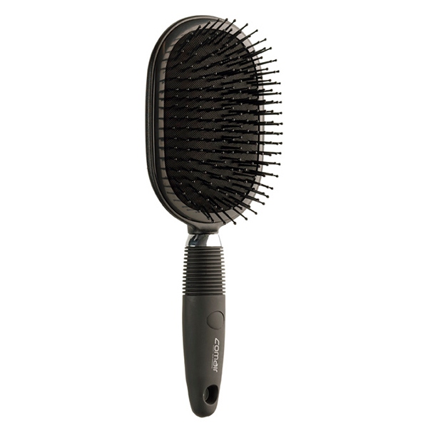 Масажна щітка Comair Master овальної форми відмінно підійде для середнього і довгого волосся. Інструмент має красивий і стильний дизайн в лаконічному чорному кольорі. Всього кілька хвилин розчісування, поєднаного з легким масажем шкіри голови, - і Ви знову повні сил і енергії!