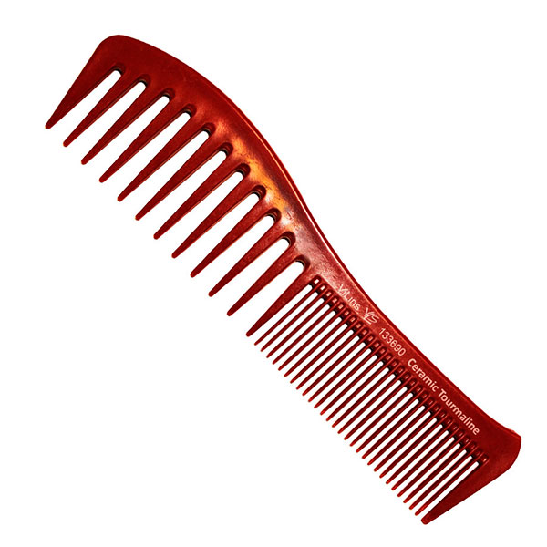 Вигнутий комбінований гребінець від торгової марки Vilins виготовлений з кераміки з додаванням кристалів турмаліну, завдяки яким волосся має більш здоровий і привабливий вигляд. Міцна кераміка стійка до високих температур і хімічних речовин. Інструмент володіє ергономічною формою і легкою вагою, внаслідок чого робочий процес проходить швидко.