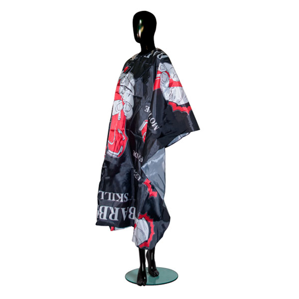 Яскравий пеньюар з оригінальним принтом стане відмінним доповненням до загального стилю барбер-салону. Він надійно захищає одяг клієнта від зрізаного волосся, бризок води та косметичних засобів. Сам пеньюар виготовлений з високоякісного поліестеру який легко відштовхує краплі води й очищається від забруднень. Завдяки універсальній застібці на гачках, пеньюар легко регулюється під шию будь-якого об’єму.