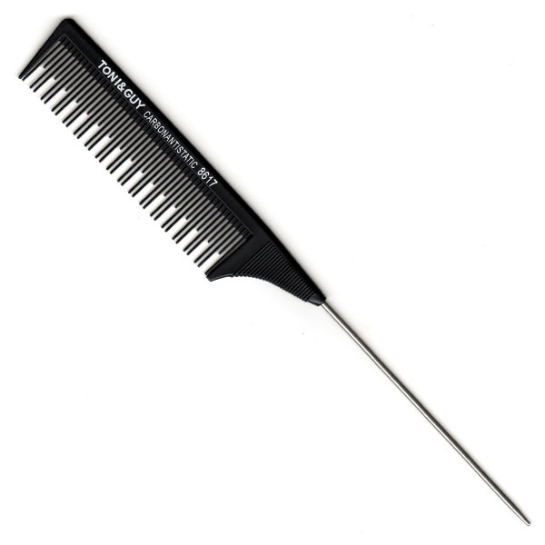 Карбоновий гребінець з антистатичним ефектом від Toni and Guy - це поєднання комфорту і якості в одному інструменті. Дана модель з металевою спицею ідеально підійде для моделювання укладок, створення тупіровки, поділу волосся на пасма та створення рівних проділів, а також в якості допоміжного інструменту під час завивки. Тонкі зубці з різною довжиною опрацьовують всі шари волосся під час начісування, завдяки чому укладка набуває більш пишної форми та пружність. Ергономічний, легкий та гнучкий гребінець стане улюбленим інструментом кожного перукаря.