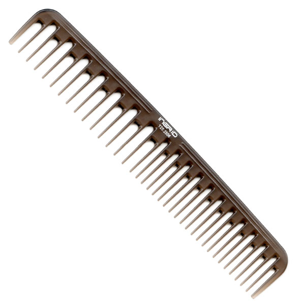 Гребінець Ingrid Y25 - це легкий і ергономічний аксесуар з нетиповим дизайном зубчиків U-подібної форми, які відмінно підійдуть для роботи з густим волоссям. Зубчики гребінця поділені навпіл на частозубий і більш рідкозубий бік. Головна перевага даної моделі - антистатичний ефект і міцний, зносостійкий матеріал дюракон. Такий тип термопластичної смоли проявляє високу стійкість до кислот, барвників, розчинників, а також не втрачає своїх властивостей і цілісності при високих і низьких температурах.