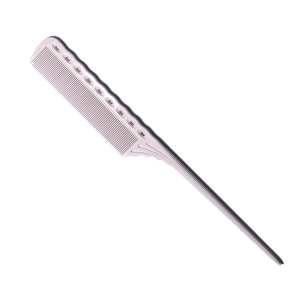 Гребінець Y.S. Park YS-115 виготовляється з термостійкого пластика, який володіє підвищеною гнучкістю і легкою вагою. Пластиковий посилений хвостик призначений для підкручування і поділу пасом. Зручний обушок і невеликі отвори, розташовані на відстані 1-го сантиметра, які дозволяють контролювати весь робочий процес. Зубчики дуже міцні та дають можливість добре прочесати волосся, оскільки вони розташовані дуже близько один до одного. Скорочений перший зубець сприяє швидкому і легкому відділенню пасма волосся. Ця виняткова модель розроблена за найвищими стандартами якості, її тривале використання не зашкодить волоссю і шкірі голови. Використання технології Gradually pitch дозволяє рівномірно розподілити натяг по всій довжині.