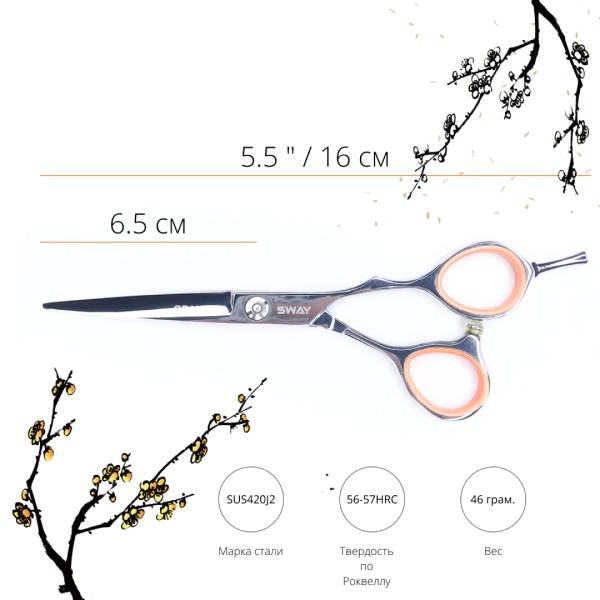 Набір професійних ножиць представлений в серії Sway Grand Limited Edition. Дані ножиці з ергономічними рукоятками дозволять вам з комфортом зануритися в роботу, легко виконуючи стрижки в будь-яких техніках. Особливістю даних ножиць є краплевидна форма кілець, завдяки чому їх можуть використовувати майстри як з тонкими так і з великими пальцями. Купуючи набір ножиць з ідентичними рукоятками, майстер може бути впевнений в передбачувано стабільній якість кожної своєї стрижки та комфортній роботі, без зміни положення кисті.