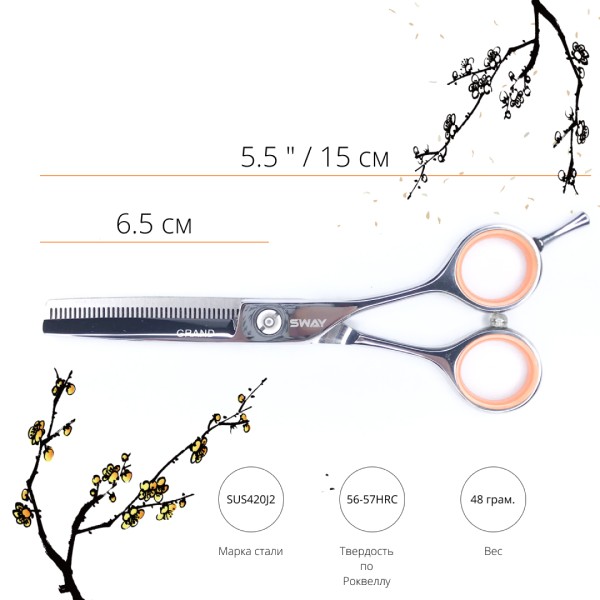 - Прямі та філірувальні ножиці Sway Grand 5,5 дюймів серії 401.