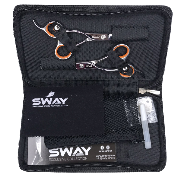 Набір професійних ножиць для майстра-лівші представлений в серії Sway Grand Limited Edition. Ці ножиці з ергономічними рукоятками дозволять вам з комфортом зануритися в роботу, легко виконуючи стрижки в будь-яких техніках. Купуючи набір ножиць з ідентичними рукоятками, майстер може бути впевнений в передбачувано стабільній якість кожної своєї стрижки.