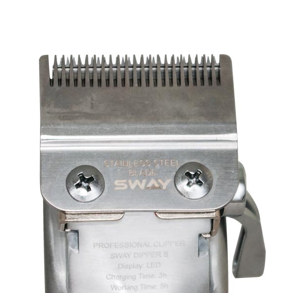 У даній моделі зібрані всі ті характеристики, які необхідні сучасному майстрові для оригінальних, сучасних і неповторних стрижок. Професійна збірка і матеріали, небувала працездатність, зносостійкі деталі та базова, але актуальна комплектація - все це Sway Dipper S. Литий суцільнометалевий корпус, м'який важіль вкл/викл, збалансованість і ергономіка, універсальний регульований ножовий блок, суперємний акумулятор і Led-дисплей з індикатором заряду - ось далеко не повний перелік переваг цієї моделі. З машинкою Sway ви повністю зміните своє уявлення про якісні електроінструменти.