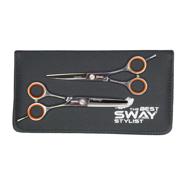 Набір професійних ножиць представлений у серії Sway Grand Limited Edition. Дані ножиці з класичними рукоятками дозволять вам з комфортом поринути у роботу, легко виконуючи стрижки в будь-яких техніках. Особливістю даних ножиць є краплеподібна форма кілець, завдяки чому їх можуть використовувати майстри як з тонкими, так і з великими пальцями. Купуючи набір ножиць з ідентичними рукоятками, майстер може бути впевнений у передбачувано стабільній якості кожної своєї стрижки та комфортній роботі без зміни положення кисті.