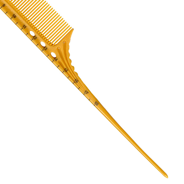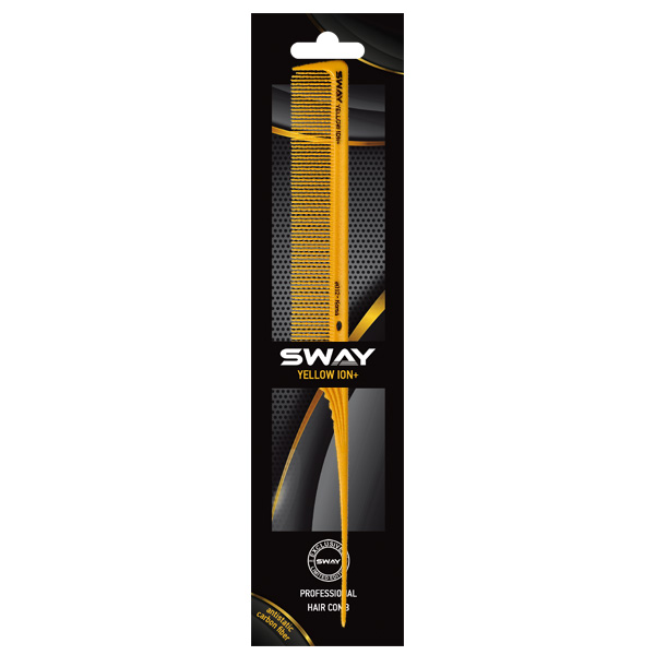 Гребінець зі спицею Sway Yellow Comb Ion + 012 використовується при роботі з волоссям будь-якого типу і довжини. Зубчики гребінця ретельно відполіровані, завдяки чому не пошкоджують кутикулу волосся і шкіру голови. За допомогою хвостика можна легко і швидко розділити волосся на зони, зробити завивку та укладку. Скорочений перший зубець допоможе легко відокремити потрібну Вам пасмо. Корпус виконаний з міцного і гнучкого карбону з антистатичним ефектом.