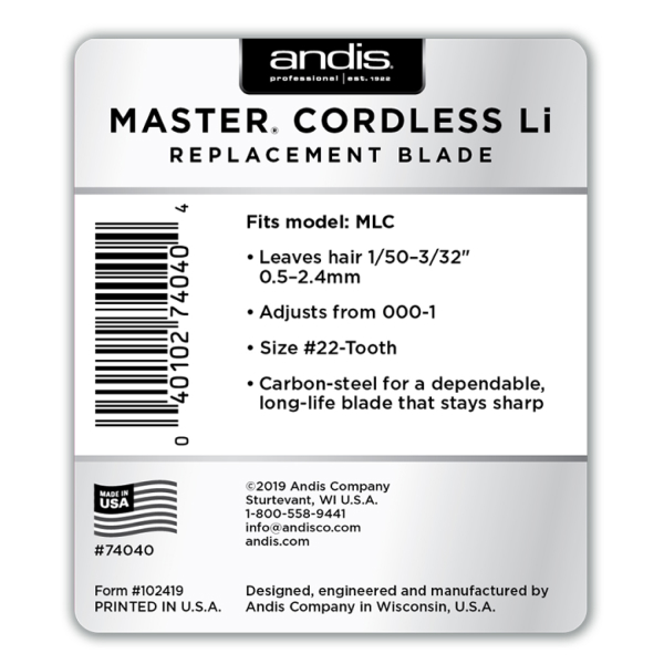 - Тип кріплення ножа: Спеціальне під модель машинки: Andis Master Cordless.