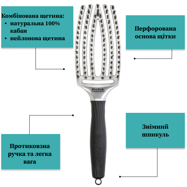 При регулярному використанні щітки Ваше волосся набуде природного блиску і незвичайної шовковистості. Створити ідеальну зачіску в домашніх умовах тепер набагато простіше зі щіткою Finger Brush Trinity Silver Selena від торгової марки Olivia Garden.