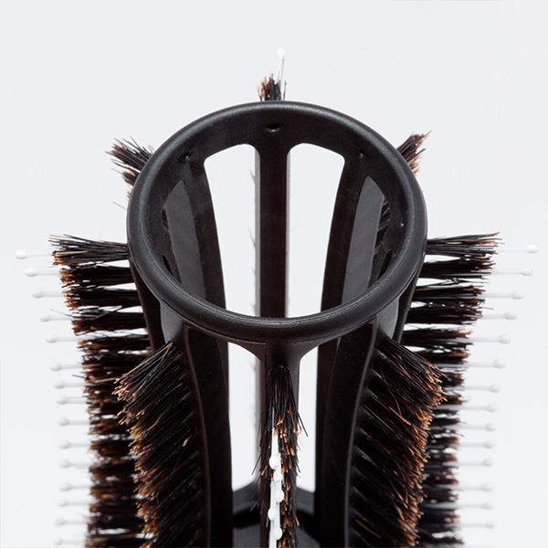 Брашинг Finger Brush має змішану щетину. 100% чиста щетина кабана розгладжує волосся під час укладання і надає їм блиску та об'єму. Антистатичні та заряджені іонами нейлонові щетинки запобігають заряду статичної електрики, роблячи волосся гладким і блискучим.