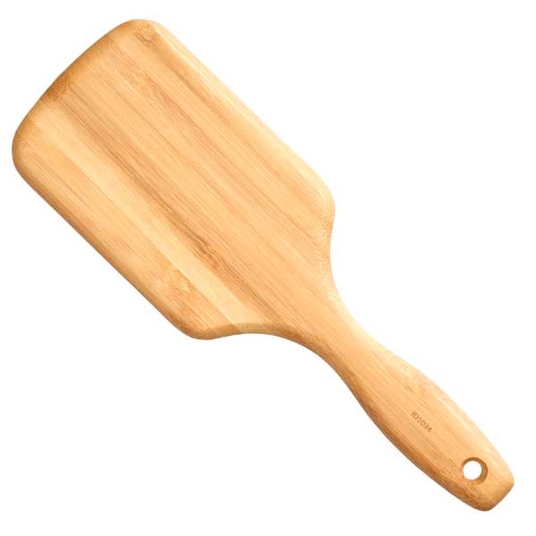 Щітка Bamboo Touch Detangle Nylon повністю виготовлена з екологічно чистого бамбука, який є міцнішим, легшим і довговічнішим, ніж дерево. Гладкий, відполірований матеріал не чіпляє пасм і не дряпає шкіру. Закруглені зубчики роблять розслаблюючий масаж голови, і здатні зняти головний біль. Сучасне іонне покриття забезпечує довге використання інструменту та наявність антистатичних властивостей. Щітка має гарний вигляд. Щітка відмінно підійде для укладання короткого волосся.