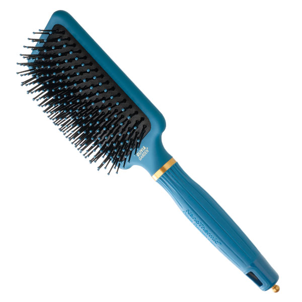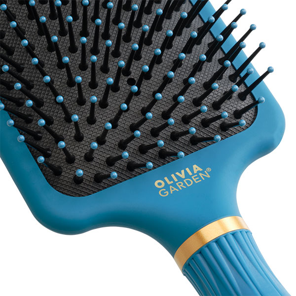 Щітки від торгової марки Olivia Garden – це якість та бездоганність в одному виробі. Масажна щітка Olivia Garden NanoThermic Peacock Limited Edition має зручну форму та відмінний великий розмір для швидкої роботи. Щітка виконана в ідеальному поєднанні чорного та рожевого кольору. Такий інструмент відмінно підійде для масажу голови, розплутування пасм та повсякденного розчісування волосся. Іонізація створює антистатичний ефект, завдяки якому волосся не пушиться, стає гладким і шовковистим.