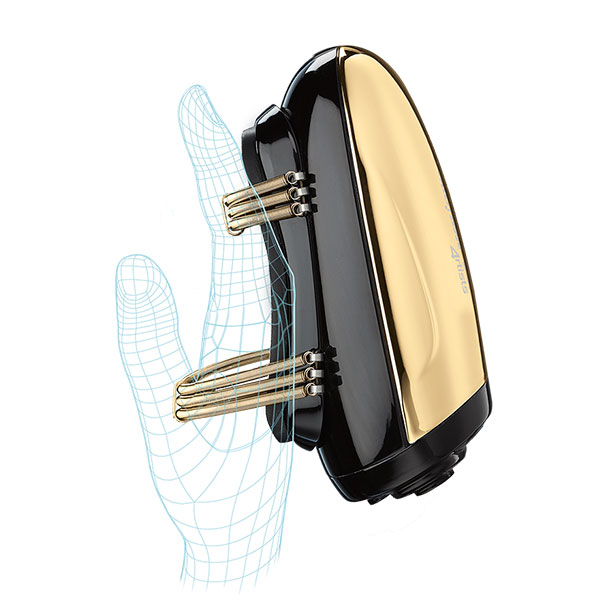 Модель оснащена цифровим мотором, за допомогою якого досягаються коливання гарної амплітуди та тиха робота. Конструкція масажера ергономічна, він зручно лежить в руці. Унікальність цієї моделі полягає в тому, що вона чудово поєднує класичний масаж руками з механічним впливом, який створює масажер.