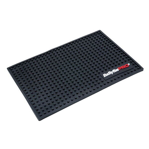Килимок повністю виготовлений з гуми, добре чиститься від забруднень і дезінфікується. На килимку розміщено фірмовий логотип компанії Babyliss Pro. Цей аксесуар чудово доповнить та прикрасить ваше робоче місце.