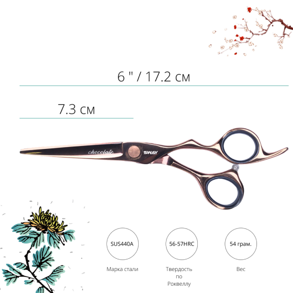 - Прямі та філірувальні ножиці Sway Art Chokolate 6 дюймів серії 310.