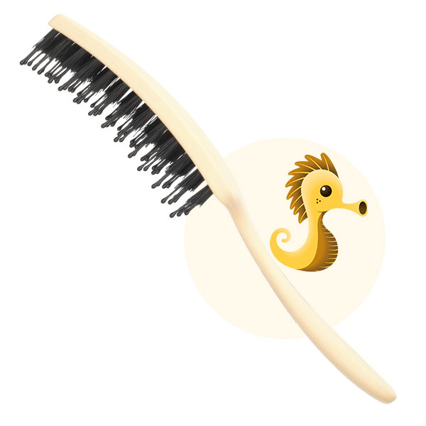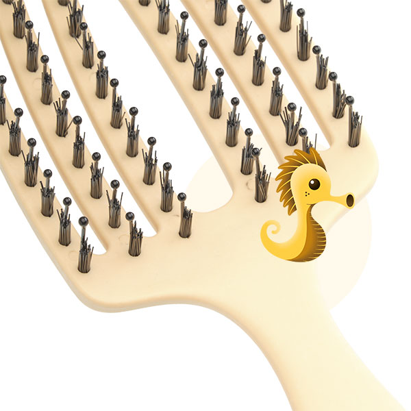 Комбіновані зуби зі щетини дикого кабана і нейлонових зубчиків м'яко і якісно розчеше волосся, а також виявить приємні стимулюючі рухи на шкірний покрив голови. Крім цього у цієї щітки іонізована щетина і вона має антистатичні властивості.