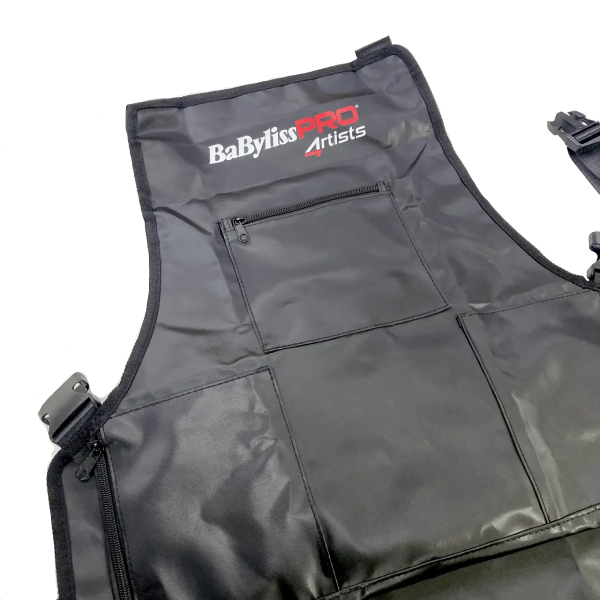 Фартух Babyliss – один з обов'язкових атрибутів для перукаря. Головне завдання фартуха захистити одяг майстра від волосся та косметичних засобів під час роботи, а регульовані ремінці дозволяють підігнати фартух під свої уподобання. Він виготовлений із спеціального поліестеру з основою з ПВХ, що робить його міцним та зручним для носіння протягом усього дня. Він має 3 кишені на блискавці для гребінців, шпильок для волосся та багатьох аксесуарів. Цей міцний фартух розміром 90 см x 55 см без урахування шлейок є водовідштовхуючим та стійким до хімічних речовин.