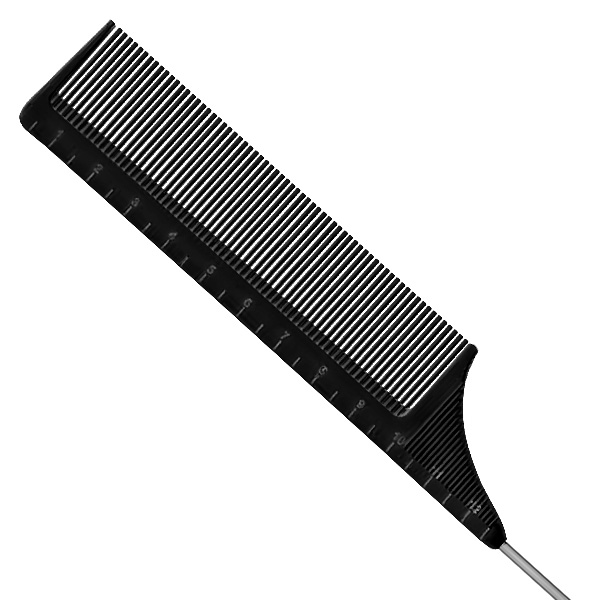 Гребінець з тонким металевим хвостиком Sway Black Comb Ion + 103 - це точність ліній в кожному русі. Тонкий хвостик стійкий до появи корозії, він стане відмінним помічником при завивці, фарбуванні, укладці та багатьох інших процедур. Корпус інструменту виконаний з міцного і гнучкого карбону з антистатичним ефектом.