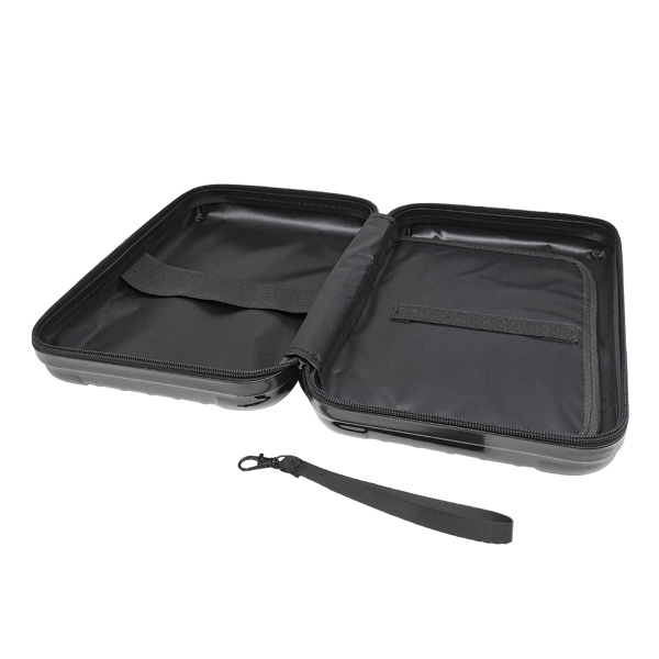 Закривається кейс на блискавку, перетворюючись на компактну валізку. Жорсткий каркас не дає можливості кейса деформуватися за незначних ударів і тиску. У комплекті є ремінець, завдяки якому зручніше переносити кейс в руках.