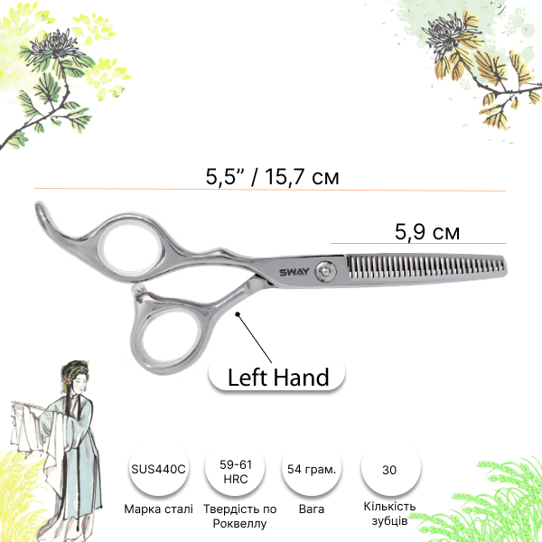 - Філірувальні ножиці для лівші Sway Infinite 5,5 дюймів серії 291.