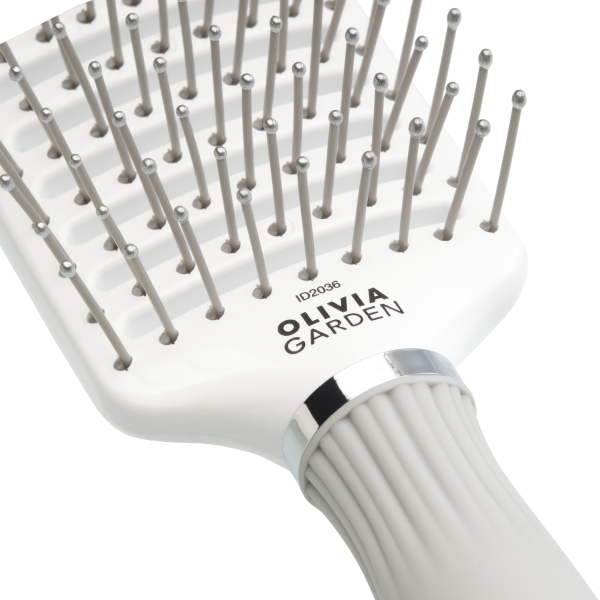 Незамінним помічником для щоденної та святкової укладки буде тунельна щітка Olivia Garden Turbo Vent Pro Ceramic + ion Tvp Shaper. З такою щіткою навіть любитель зможе створити ефектний образ за кілька хвилин. Нейлонові й довгі щетинки не завдають шкоди волоссю і шкірі голови, оскільки на кінцях є масажні кульки. При роботі створюються максимально природні лінії. Завдяки легкому і міцному корпусу, а також прогумованій та ергономічній ручці щіткою легко користуватися при цьому кисть не втомлюється під час роботи. Для зручності є висувна спиця, якою можна з легкістю розділити пасма на кілька частин.