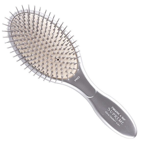 Щітка Olivia Garden Supreme Ceramic + ion Pro - це простий і надійний інструмент для щоденного догляду за волоссям, а також для створення об’єму або розпрямлення кучерявого волосся. Міцні та довгі нейлонові зубчики з великими кульками на кінцях будуть делікатно розчісувати Ваше волосся, не завдаючи шкоди їх структурі. М'яка подушечка, на якій закріплені штифти акуратно пружинять під час роботи, тим самим не пошкоджуючи шкіру голови.